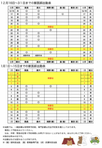 12月後半〜1月前半の獣医師の出勤日をご案内いたします。